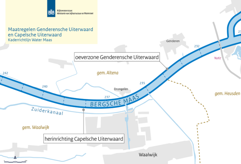 Rijkswaterstaat gaat de Capelsche uiterwaard in de gemeente Waalwijk natuurvriendelijker inrichten met twee oevergeulen en een overstromingsvlakte langs de Bergsche Maas. Dit zorgt voor meer leefgebied voor waterplanten, vissen en kleine waterdiertjes in en langs de rivier. En dat is weer gunstig voor de biodiversiteit en ecologische waterkwaliteit.