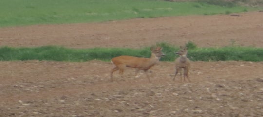 Reeën met aan linker onderzijde twee fazanten